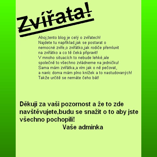 michaela1989.infoblog.sk 22.03.2015 v 08:13 Ja mám tiež rada zvieratá a rada si vždy popozerám tvoj blog.